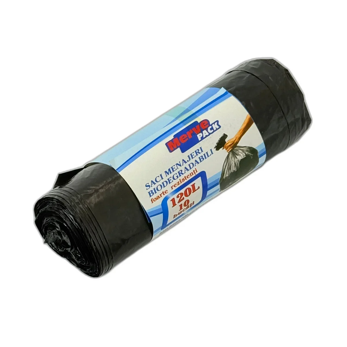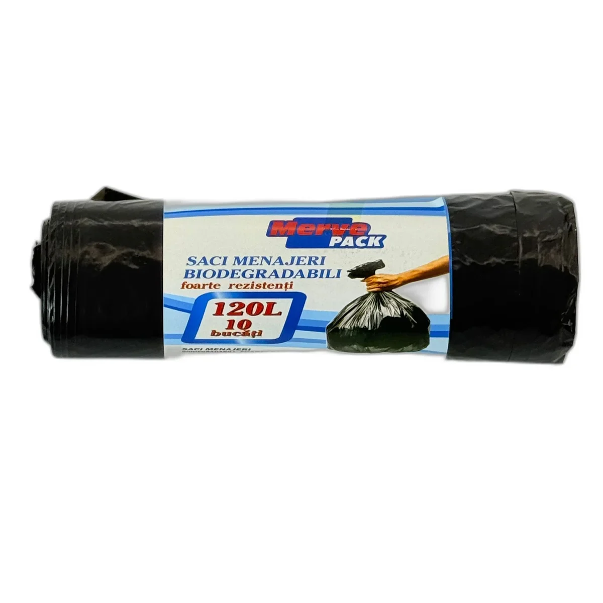 Saci menajeri biodegradabili Merve Pack, capacitate 120L, foarte rezistenti, pachet cu 10 bucati, perfecti pentru utilizare intensa.