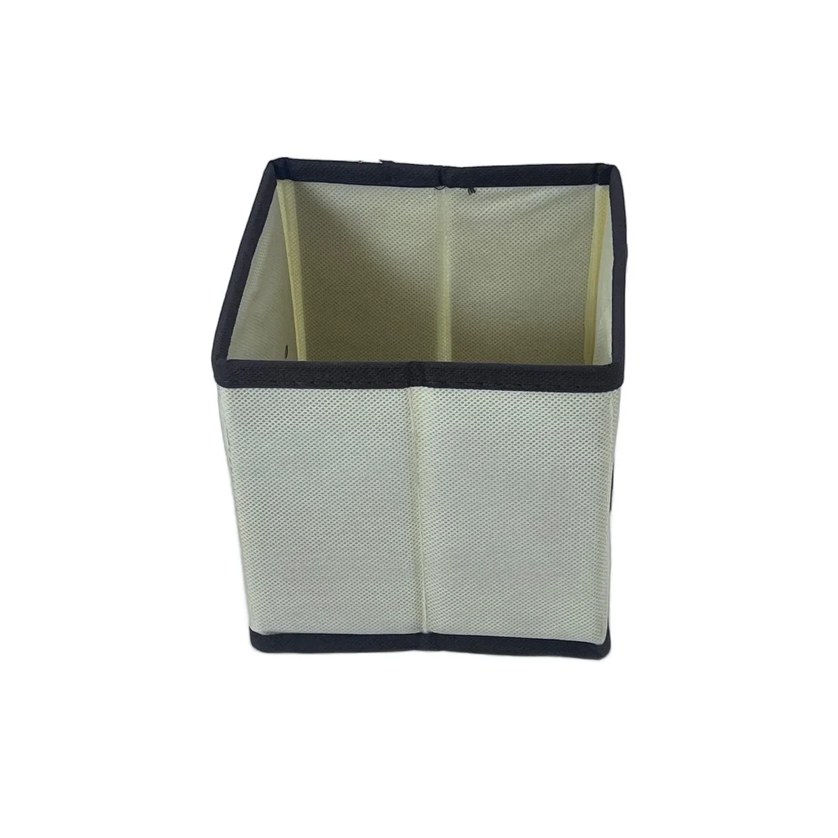 Maximizează spațiul din dulapuri sau rafturi cu această cutie textilă compactă de 15x15x15 cm, ideală pentru organizarea articolelor mici din casă. Construită din material respirabil și dotată cu mâner frontal pentru manevrare ușoară, este o soluție practică, durabilă și discretă pentru orice spațiu.