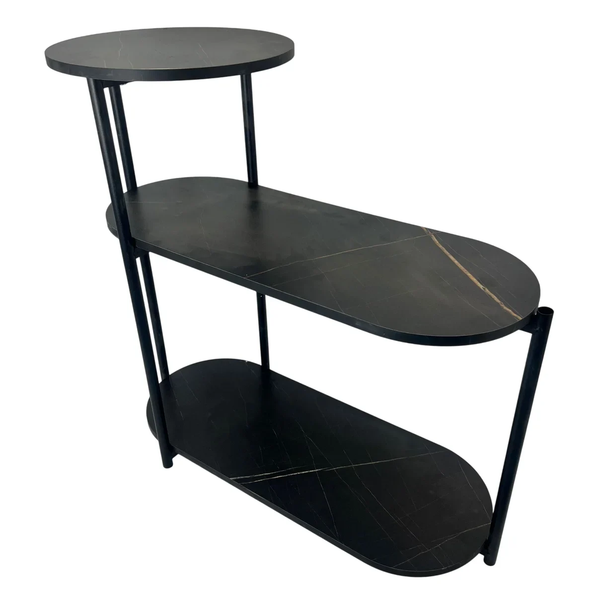 Organizează eficient și cu stil spațiul tău cu etajera neagră cu 3 rafturi, dimensiuni 65x30x62 cm, ideală pentru depozitare și expunere. Cu un design modern și ergonomic, această piesă versatilă adaugă funcționalitate și estetică oricărei camere, fără a ocupa spațiu inutil.