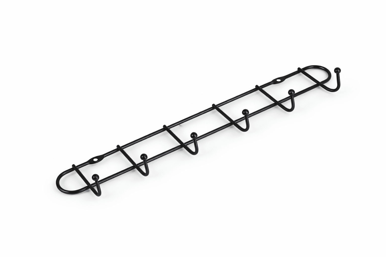 Cu multiple cârlige dispuse uniform, cuierul permite organizarea clară a hainelor, genților sau accesoriilor, fiind ideal pentru hol, dormitor, baie sau birou.