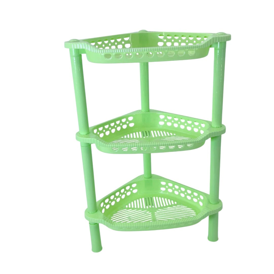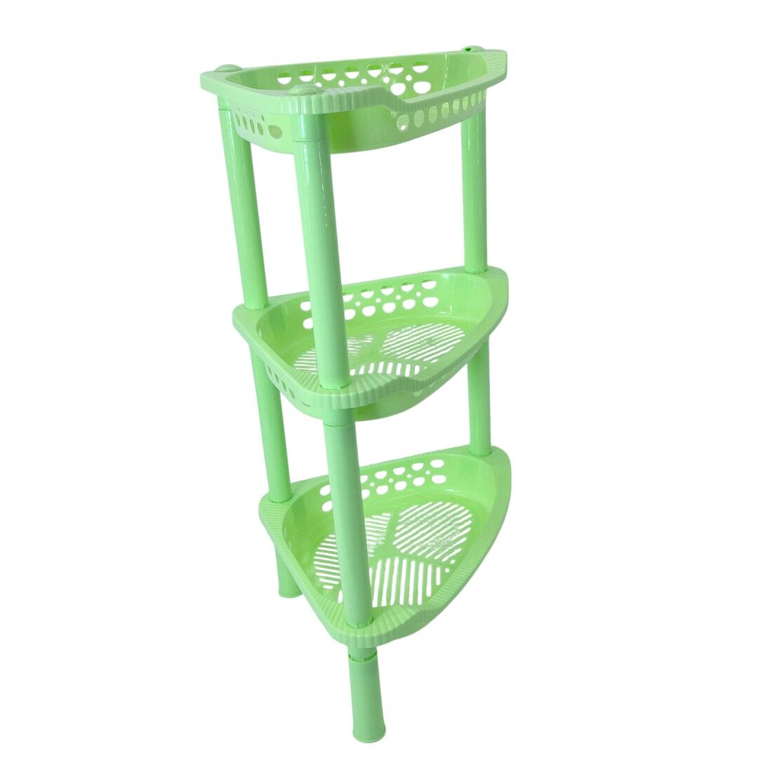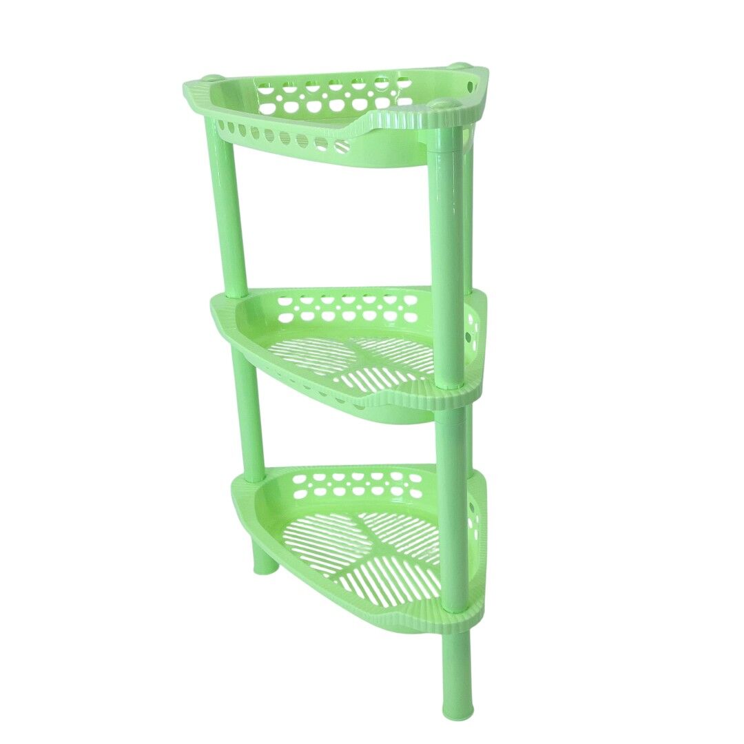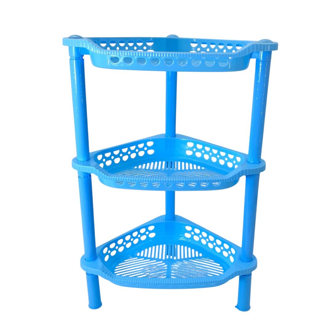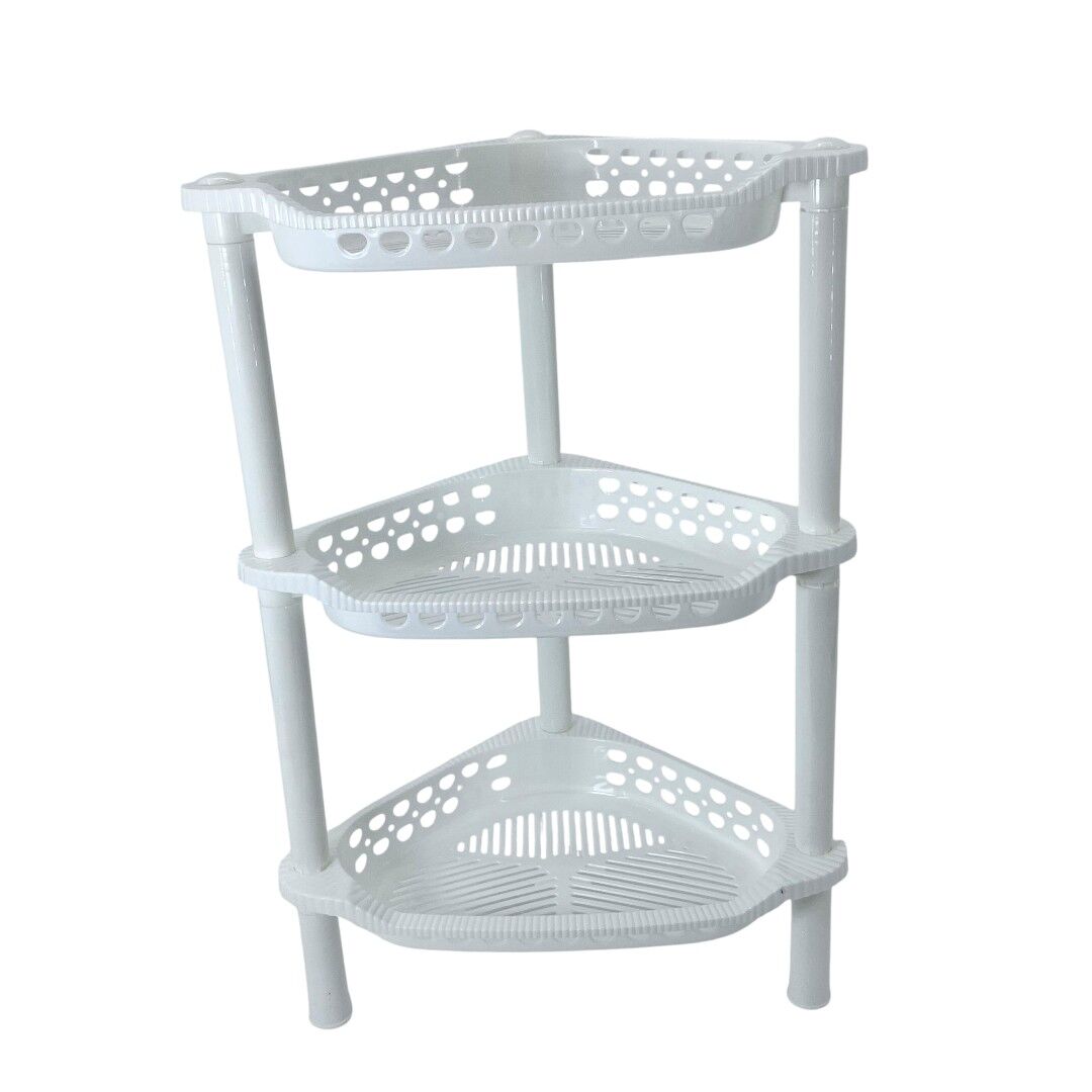 Optimizează spațiul din casă cu etajera colțar din plastic cu 3 rafturi, ideală pentru depozitarea obiectelor de baie, produse de curățenie sau accesorii de bucătărie. Forma sa practică de colț se integrează perfect chiar și în spațiile mici, oferind o soluție eficientă și estetică de organizare.