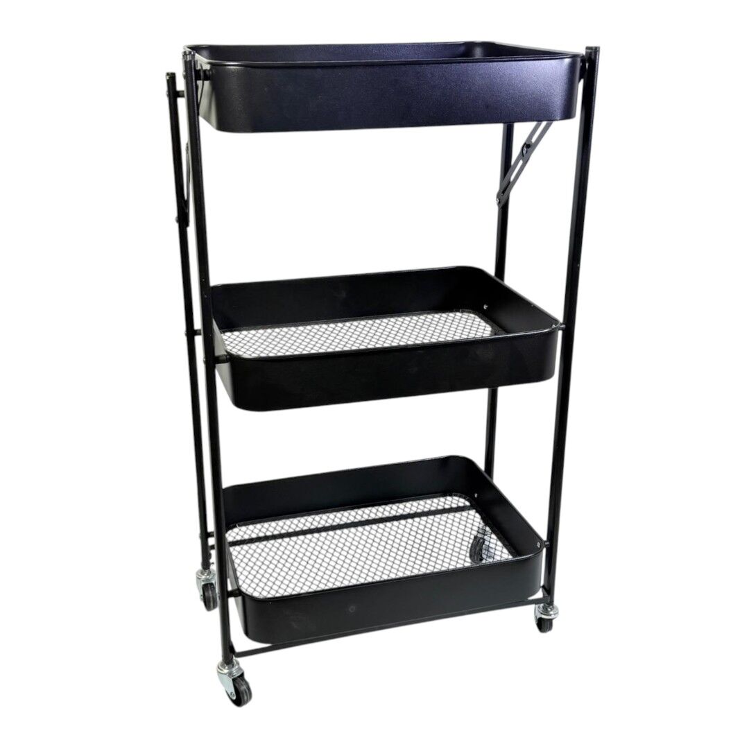 Organizezi rapid și eficient spațiul folosind raftul metalic mobil cu 3 niveluri. Designul compact și structura metalică rezistentă îl fac potrivit pentru depozitare în bucătărie, baie, birou sau spații comerciale. Cele trei tăvi oferă spațiu generos pentru obiecte, iar roțile permit mutarea ușoară oriunde ai nevoie.