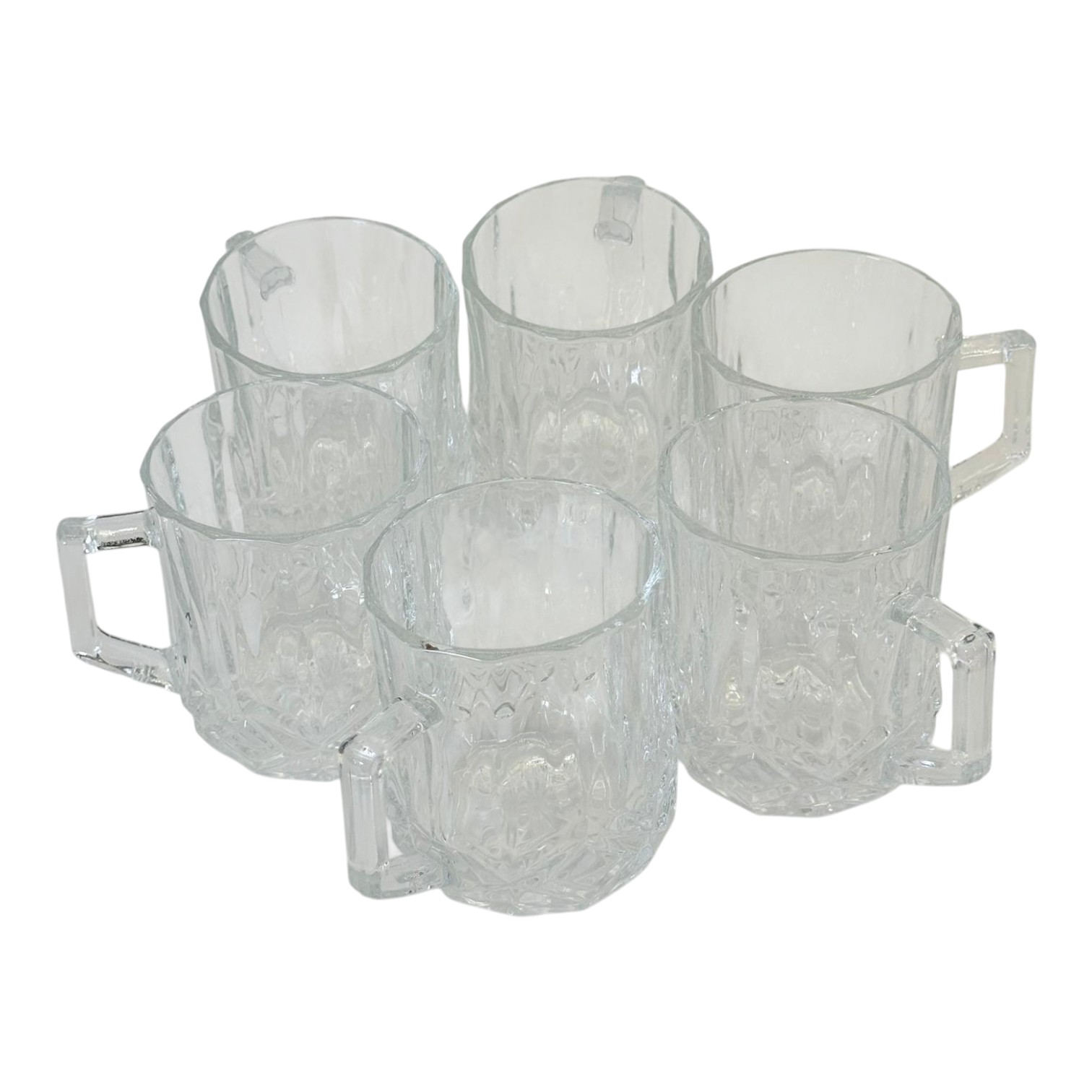 Acest set de pahare este realizat din sticlă transparentă și este conceput pentru utilizare practică zilnică, fiind potrivit pentru servirea apei, sucurilor sau a altor băuturi reci. Designul fațetat, vizibil pe întreaga suprafață a paharelor, oferă un aspect elegant și o prindere sigură în timpul utilizării.
