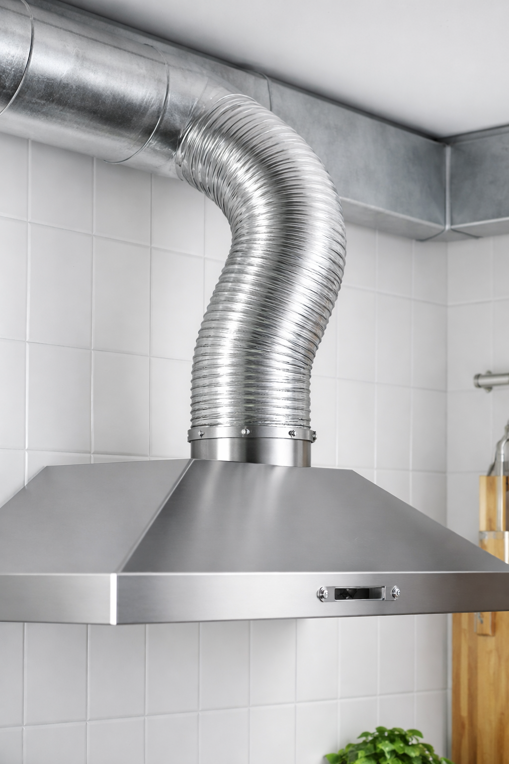 Alege o soluție practică pentru conectarea hotei la sistemul de ventilație și asigură evacuarea eficientă a aerului din bucătărie.