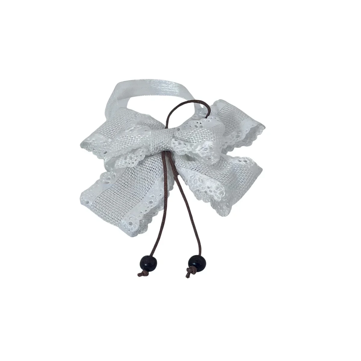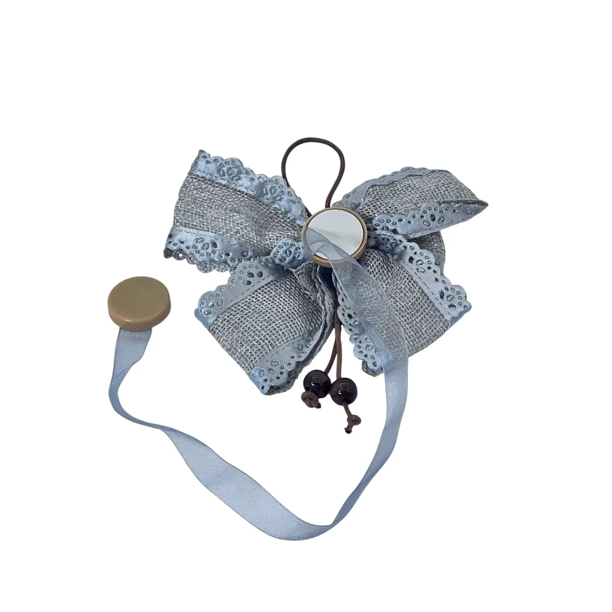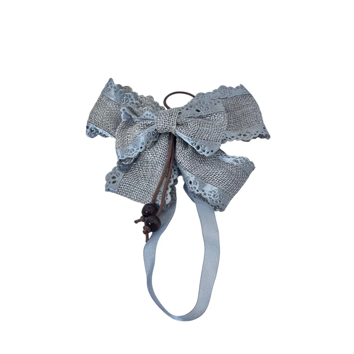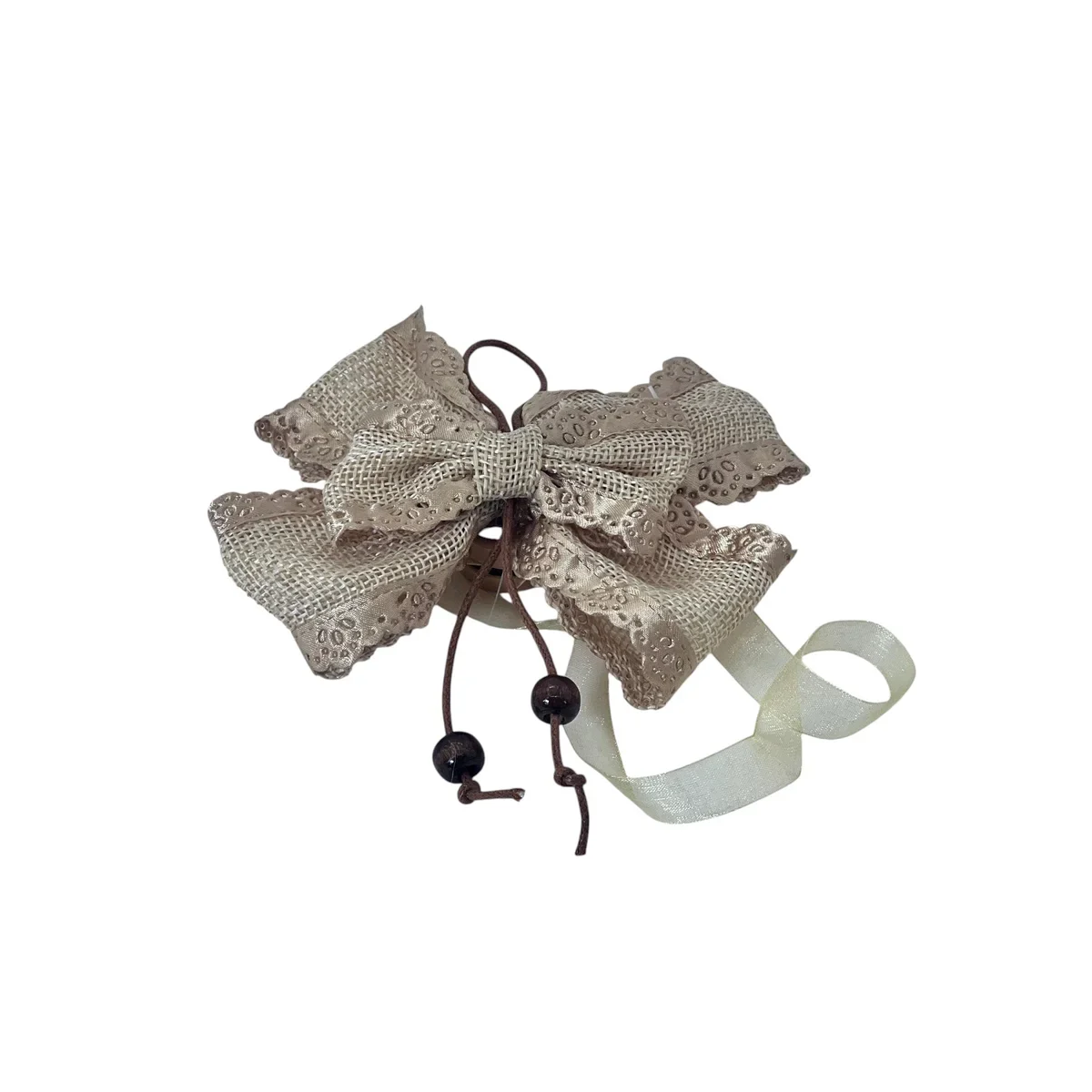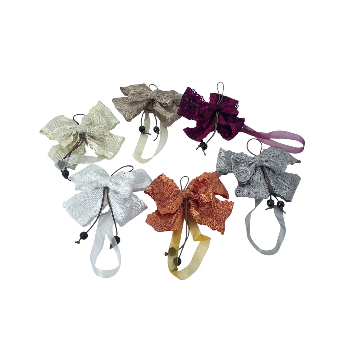Oferă un plus de eleganță și rafinament perdelelor tale cu acest set de prinderi decorative în formă de fundă, realizate din dantelă fină și accesorizate cu șnur și mărgele decorative. Fiecare fundă are o prindere ușor de utilizat, perfectă pentru stiluri rustice, vintage sau romantice.