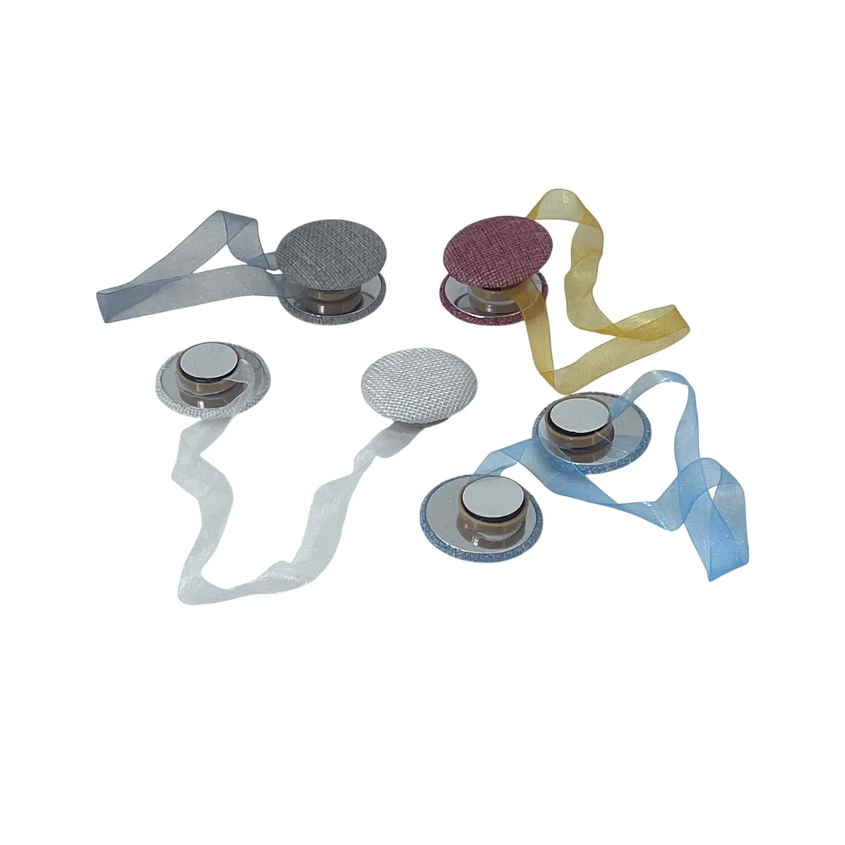 Adaugă eleganță și funcționalitate perdelelor tale cu setul de prinderi magnetice cu panglică, ideal pentru orice tip de decor interior. Aceste accesorii sunt soluția practică și estetică pentru a fixa perdelele fără a perfora peretele, protejând în același timp materialul.