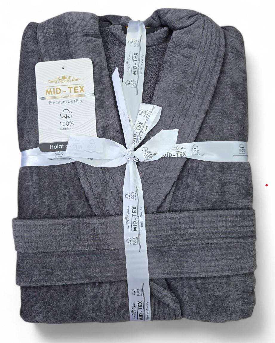 Halatul de baie MID-TEX Premium este realizat din bumbac 100%, cu o densitate de 380 g/m², oferind o combinație echilibrată între absorbție ridicată, confort și rezistență în utilizare zilnică. Textura moale și plăcută la atingere îl face ideal pentru folosire după baie, duș sau relaxare acasă.